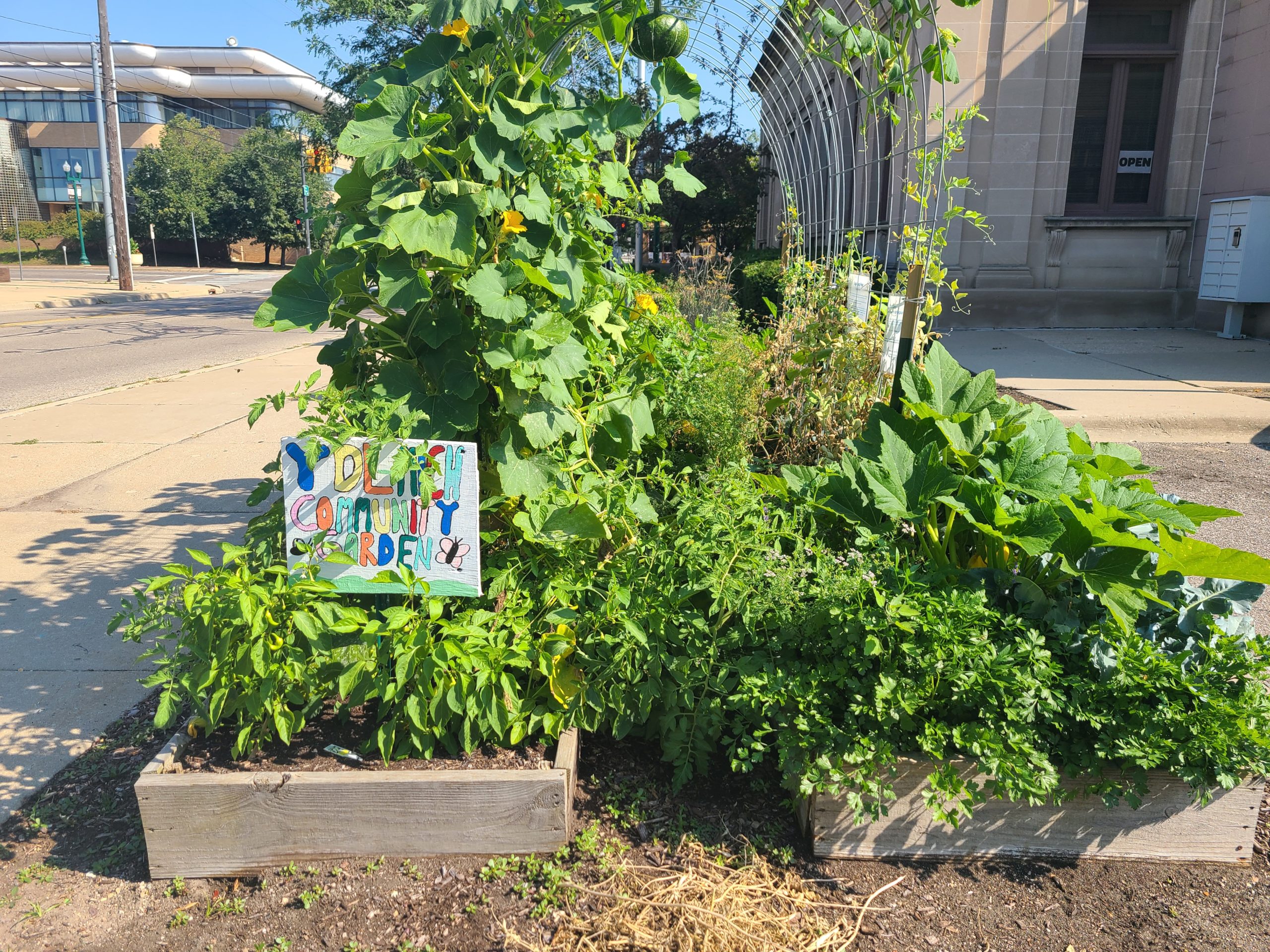 Four raised bed garden boxes filled with compost provide the majority of our planting area for the Michigan Avenue branch’s community garden. Community members are encouraged to plant, care for, and harvest the garden. A weekly Gardener’s Club, open to all community members, is held May-October at YDL-Michigan. Community garden produce is used in demonstration based programs, how-to recipe videos, and in our Gardener’s Club meetings!